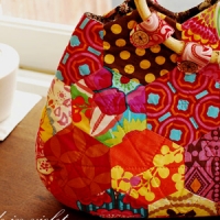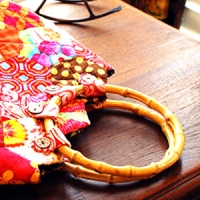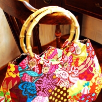 | 생활용품왕골 손잡이와 화려한 패치워크가 만들어 내는 조화로움을 느껴 볼 수 있는 빅백 |