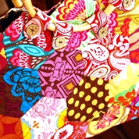 | 생활용품왕골 손잡이와 화려한 패치워크가 만들어 내는 조화로움을 느껴 볼 수 있는 빅백 |